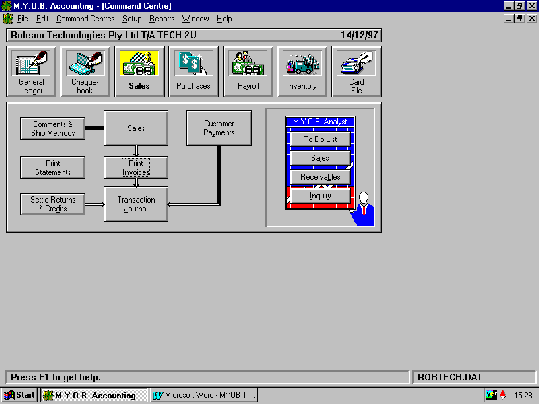 Once you have finished the Setup Interview, you need to enter information into each command center of MYOB before you start using it. These command centers are the General Ledger, Sales, Purchases, Payroll, and Inventory.