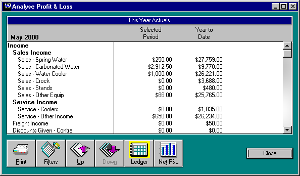 Click on the Ledger button to go back to the original analysis shown from the net profit and loss bar graph.