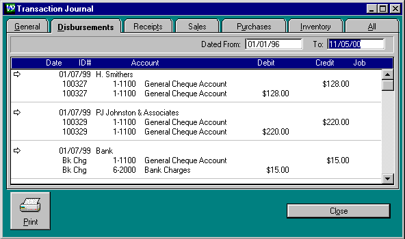 Enter the date for the start of the period you wish to look at Cash Disbursement Journal entries for in the Dated From: field. Enter the date for the end of the period in the To: field.