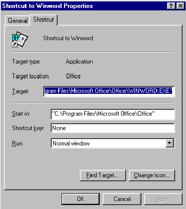 - Click right on the picture of the shortcut icon. A shortcut menu will appear.