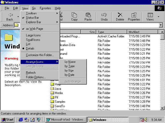 NOTE: how the options under Arrange Icons match the column headings of the Details view.
