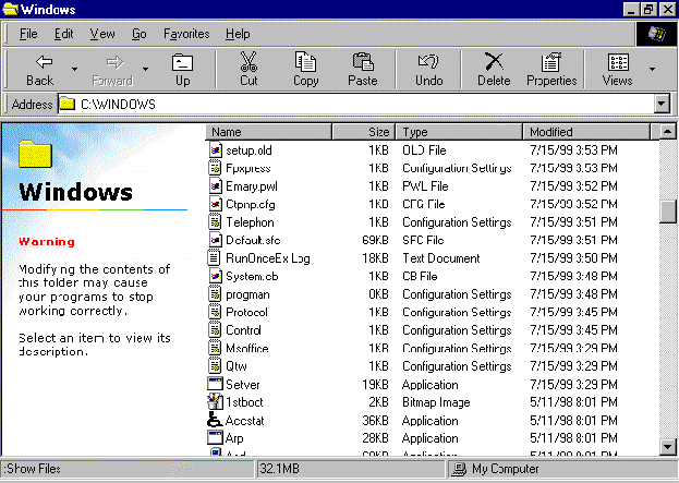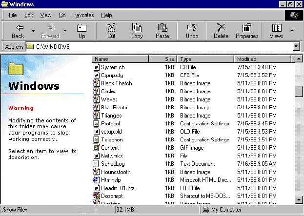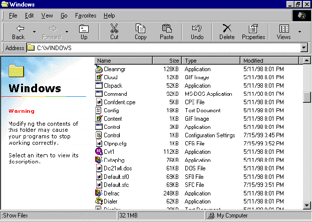 - Notice that all the folders are shown first, and then all the files. Microsoft® Windows® 95 always arranges icons in this way – first all the folders, then all the files.