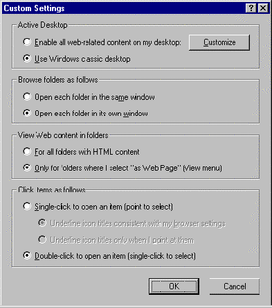 - Click on OK. You will notice that your desktop has changed to dark blue. All icon names are now underlined as they are on the Internet.