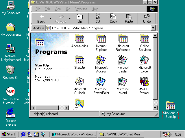 - Double click on the Start Up shortcut to open the Start Up folder.