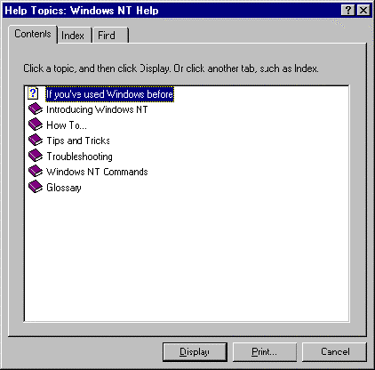 - Click on the Help Contents button. You will be taken to Windows NT Help. The following screen will appear.
