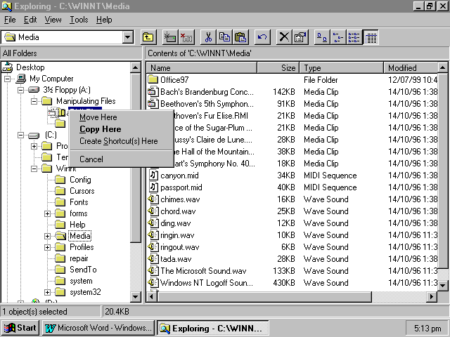 Copying And Moving Files Using A Shortcut Menu