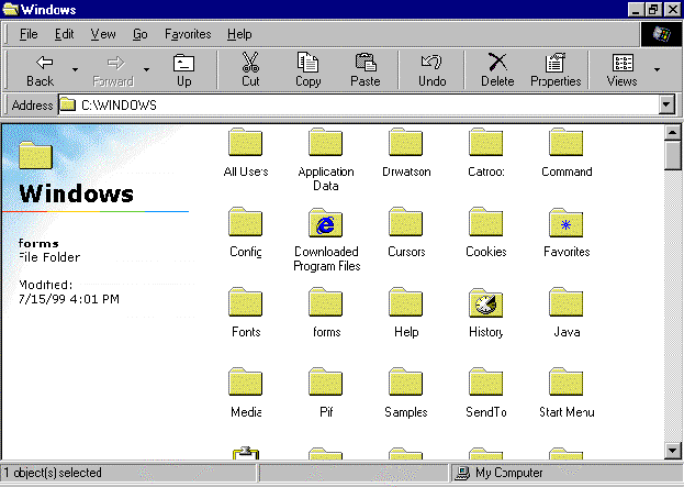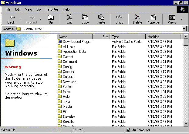 - Notice that all the folders are shown first, and then all the files. Microsoft® Windows® 95 always arranges icons in this way – first all the folders, then all the files.