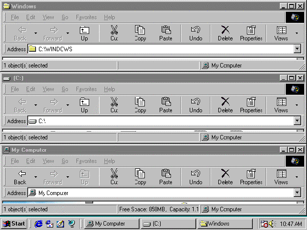 - Click on the Close button of the last window you opened (the Windows folder). All the related windows will close.