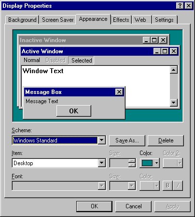 - Click on the Appearance tab. This is where you change the way that individual parts of your desktop look like.