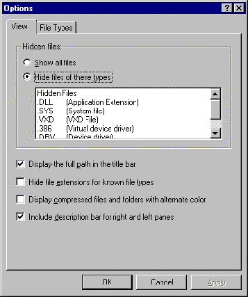 - De-select this option. Click on Apply and then OK. Notice the difference in the Windows NT Explorer window.
