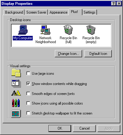 - Double click on the Display icon to show the Display Properties dialog box