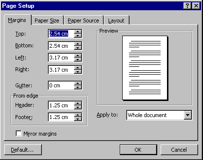 Paper Size and Margins The settings for the paper size and margins are found in the Page SetUp option under the File menu.